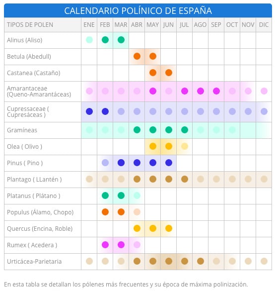 Durante la época de polinización, generalmente durante la primavera, el polen se encuentra suspendido en el aire, esta concentración trae consigo que los episodios de alergia sean cada vez más habituales y numerosos, trayendo consigo problemas de rinitis, asma y conjuntivitis alérgica.